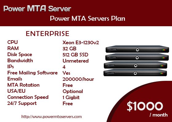 We offer free email marketing software to send bulk emails that allows to track down each single email delivery status and logs. you can track down your campaign how many people opened, bounces, rejections, unsubscribes etc… The software also allows to manage your lists and export good and bad email addresses for future use. Buy smtp hosting server from Powermta servers and start sending emails now with dedicated IP and from your own domain name. Each smtp hosting account come with C panel access so that you can create and manage email addresses. Each smtp hosting account also come with web mail access so that you could check your emails, you can also use our smtp hosting account with outlook to send emails. CPU Xeon E3- RAM 1230v2 Disk Space 32 GB Bandwidth 512 GB SSD IP's Unmetered Free Mailing Software 4 Emails Yes MTA Rotation 200000/hour USA/EU Free Connection Speed Optional 24/7 Support 1 Gig bit Free $1000/month https://www.powermtaservers.com/bulk-smtp