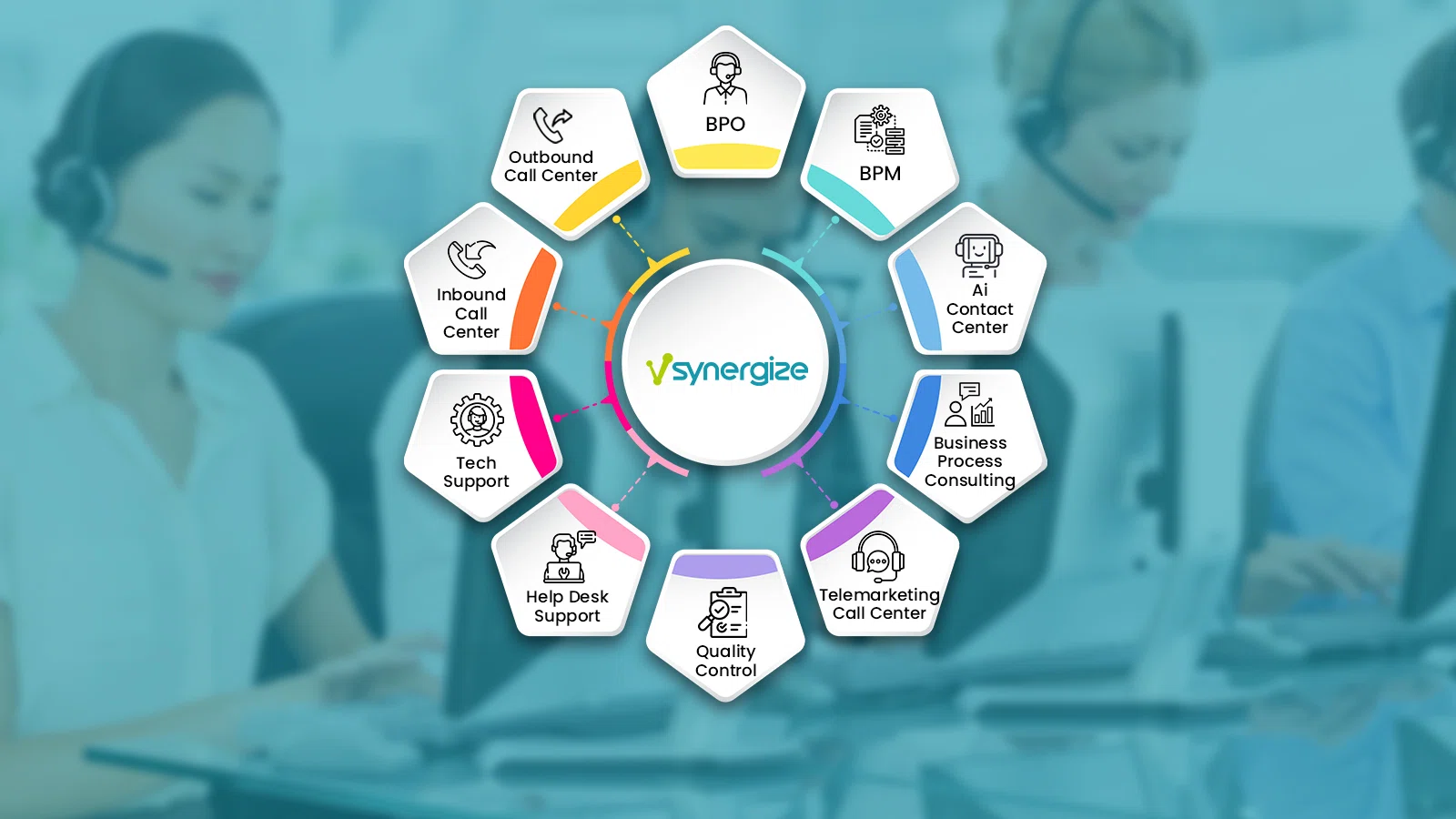 Vsynergize excels as a versatile service provider specializing in Omnichannel AI Contact Center solutions and BPO service. Their comprehensive Business Process Management (BPM) services optimize workflows through detailed analysis and automation. As a leading Business Process Outsourcing company, Vsynergize offers diverse services like Finance and Accounting, Back Office, Call Center, L1-L3 Helpdesk Support and IT Outsourcing, e-commerce, claims processing, Order Management, Data Analytics and Revenue Cycle Management. With Vsynergize's integrated approach, enhance your client operations and improve customer experience.
